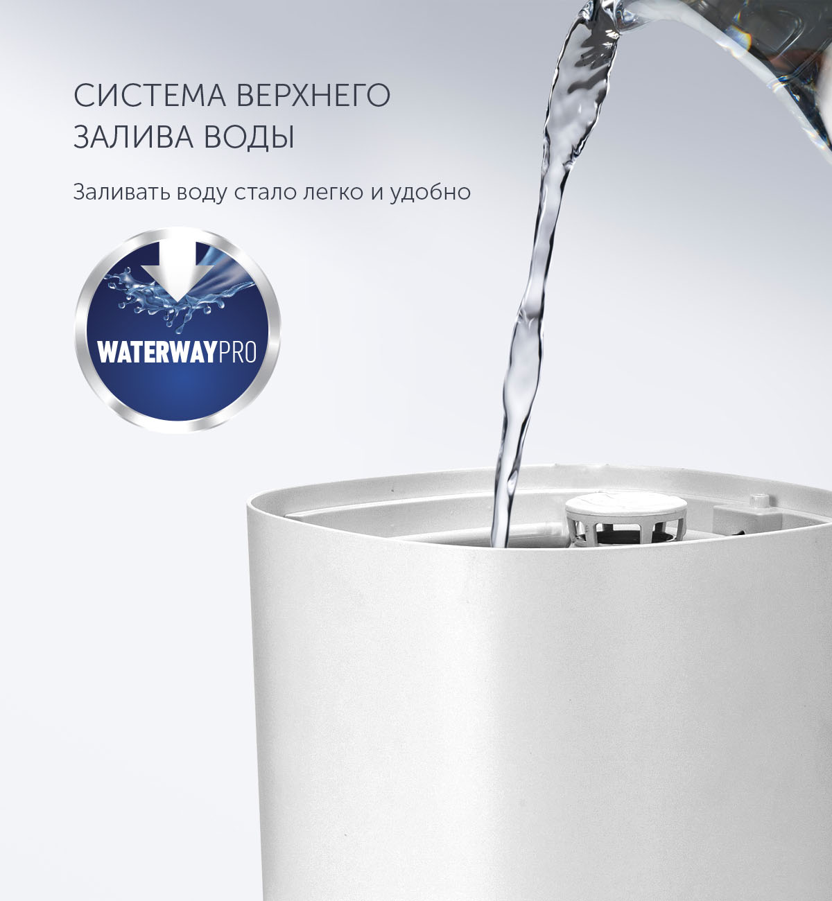 Новая технология верхнего залива "WATERWAY PRO" – для залива воды достаточно снять крышку.