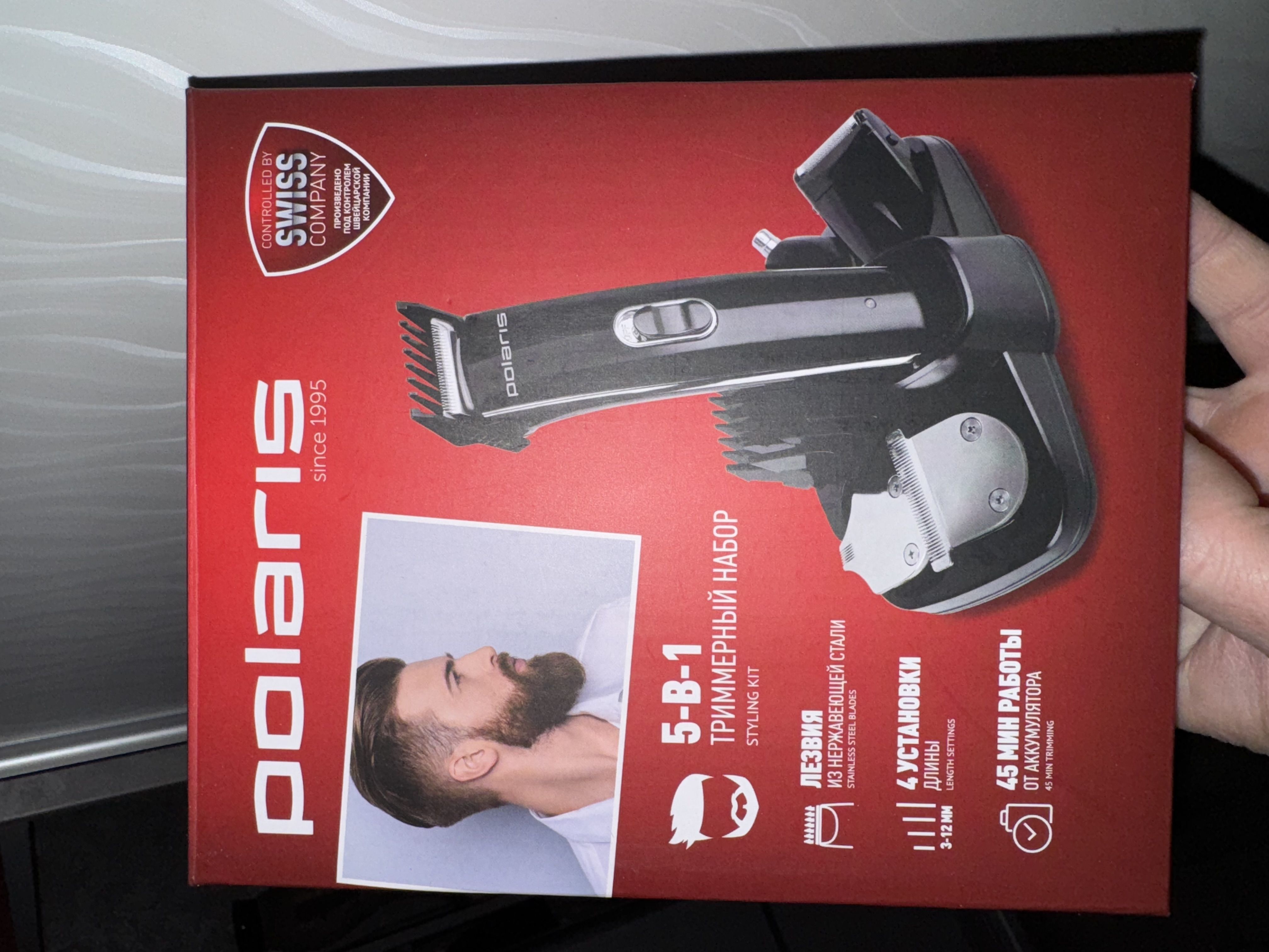 В комплекте насадки: широкий триммер для стрижки волос (3-12 мм), узкий триммер для стрижки бороды/усов, мини-бритва, триммер для фигурных и детальных стрижек, для удаления волос в носу и ушах, подставка для хранения и подзарядки.